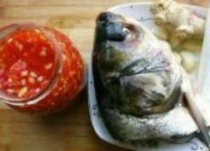 准备鱼头,剁姜蒜等材料