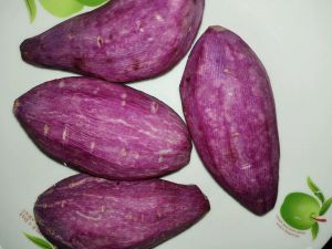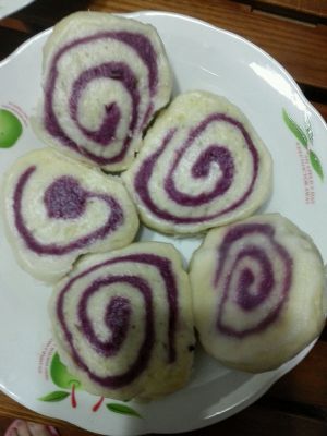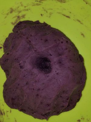 紫薯蒸熟碾碎,加入面粉,牛奶酵母