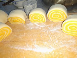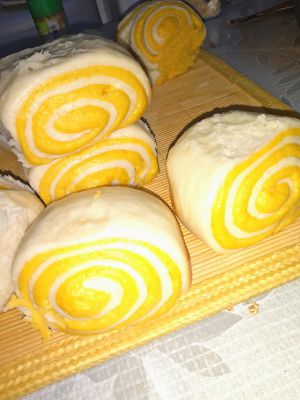 拍照忘记了,和二个面团,白面加酵母,牛奶,糖,少量碱温水和好盖湿步,南瓜加白面酵母和好,