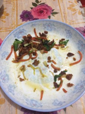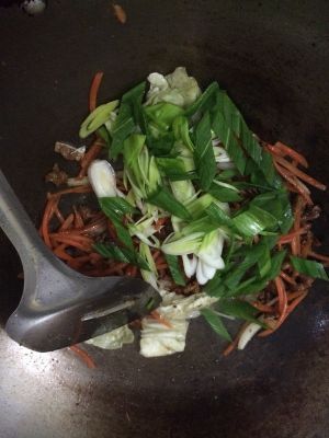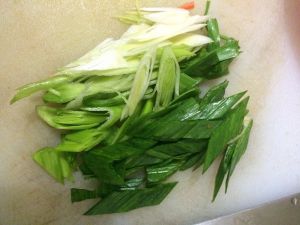 蒜苗切碎,白菜少许没拍照了!