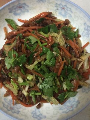 接着出锅啦!加入少许香菜拌一下!