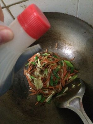 然后放入白菜和胡萝卜翻炒!