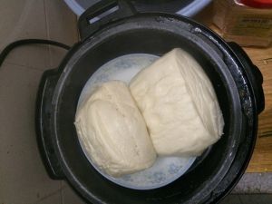 揉好的面团发酵到两倍大。我用了一个半小时。