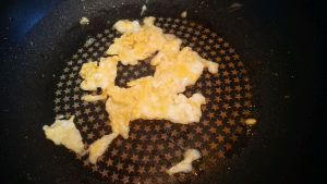 用煎馒头的油锅炒熟剩下的鸡蛋液