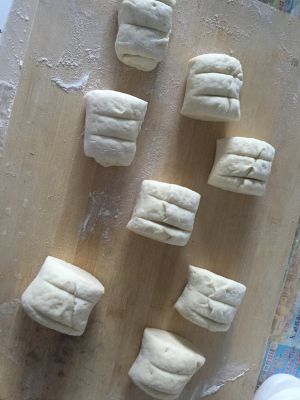 奶粉面粉混合揉成面团,擀成面饼卷起,切kuai