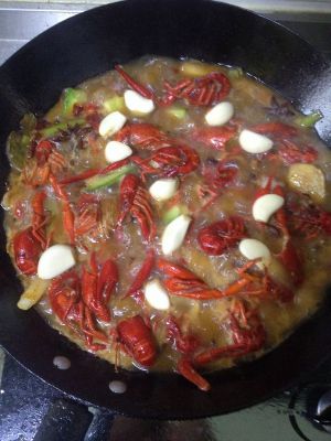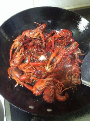腌制好的虾先下锅抄至变红色,加入各种辅料,五成熟时加点老抽上色,抄匀后加入生水至没过虾一倍的量,加盖大火熬煮至沸腾,加入郫县豆瓣酱,改小伙熬煮至收汁。完成!