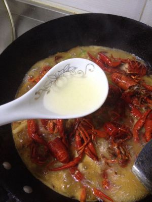 热锅,倒油,加入小龙虾翻炒3-5分钟,呈红色,捞出备用。