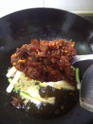 加入自制辣椒酱,没有可加入少许豆瓣酱,炒出红油。