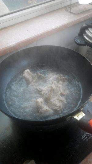 把排骨放在热水里焯一下,弄出血丝