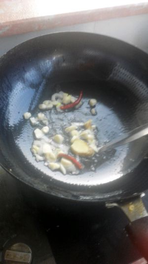 油稍微热了的话加入葱姜蒜和小辣椒