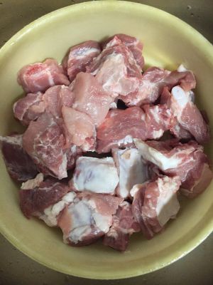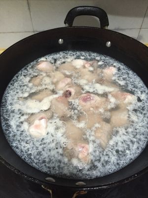 排骨冷水下锅,加点料酒出血水,然后捞起冲洗干净备用