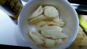 排骨清洗干净后备用,锅里加水放入3片生姜和适量料酒冷水放入排骨,待水烧开后煮2分钟,捞出排骨清洗干净泡沫备用