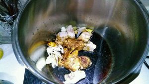 放入备好的调料,加热水持平食材,放入冰糖,增色提味,滴几滴醋,炖30-40分钟。
