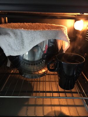 冬天发面借助烤箱发酵功能,放一杯热水保持湿度,50分钟发至两倍大!