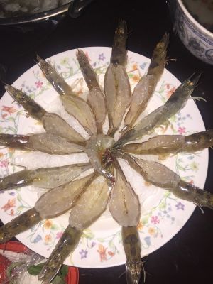 大虾洗净去虾线,去头去皮只留一点虾尾