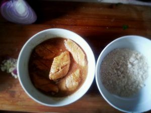 ~将燕麦片加调味料(或黑胡椒,或椒盐,或白胡椒)一起打碎机里打五成碎。 ~将洋葱,蒜末,加料酒,味极鲜少许,白开水适量一起打成腌料汁。 ~将鸡翅冷水煮五成熟,进腌料汁入味,半小时左右。