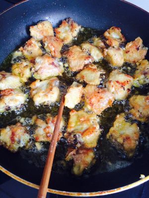 ~做炸粉是放了白胡椒的话,成品就用番茄沙司或是烤肉酱或是酸辣酱。 ~黑胡椒味。 ~椒盐味。 ~蒜香味。 这些都是可以随自己喜欢想去做出来的。