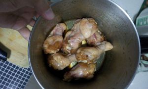 鸡翅用刀划两下,放上佐料,腌制2-3小时,让其入味。