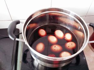 陶瓷煲能保持五分钟沸腾,一晚后,鲜香的鸡蛋卤好了!