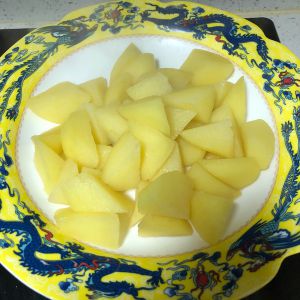 准备土豆块儿、洋葱片、青椒片(家里没有了就没放)、西红柿丁或者番茄酱,葱、姜、蒜切片、干辣椒切段儿