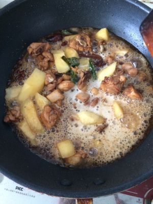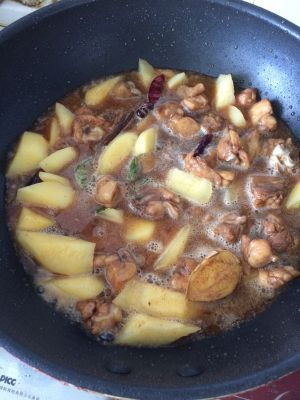 倒入啤酒,没过鸡肉。煮开后放入土豆块儿和洋葱片。加入豆瓣酱、西红柿酱、老抽调色。依据口味适当放盐。一般不需要再放了,因为豆瓣酱很咸。