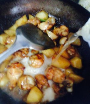 然后放土豆,炒炒炒! 然后放啤酒 炖炖炖
