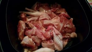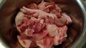 鸡翅切块儿,起锅飞水,加料酒腌制