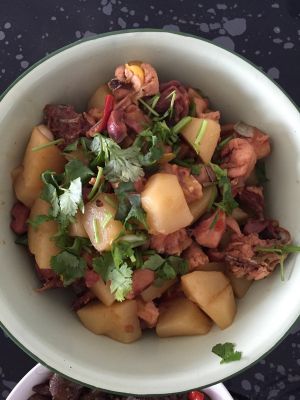 香喷喷的中原大盘鸡做好了,最后一步喜欢的可以加点洋葱或者青椒