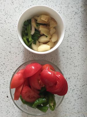 配料:番茄,青椒,大蒜,葱,姜各若干