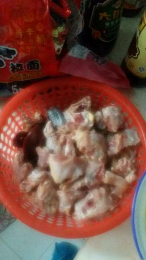 洗净的鸡剁成自己喜欢的块,可以在水里泡一会去血水,然后沥干水份,一般肉质很好的散养土鸡就不需要了,鸡块里加丁香。
