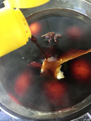 与茶汤混合,香料也一同放进去。再加入酱油。