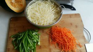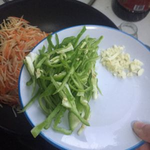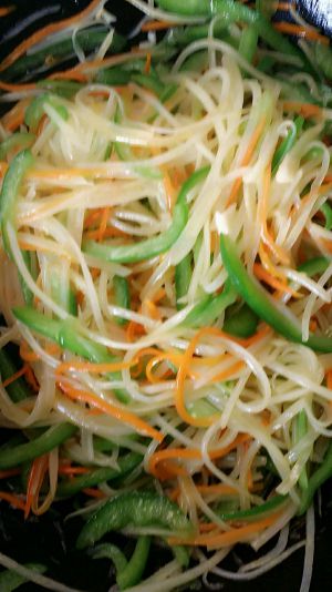土豆,胡萝卜,青椒切丝备用
