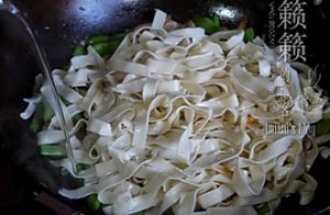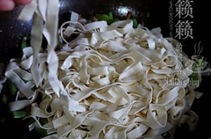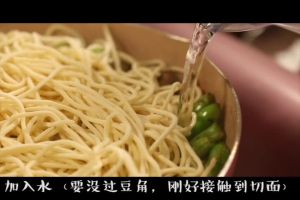 等到汤要烧干了,揭开盖子,先用筷子抖搂抖搂面条,但是不要翻身,然后顺着锅边绕着四周倒水,水面不要没面条。