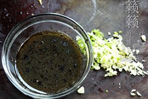 调制一碗味汁备用:生抽+老抽(喜欢酱色重些的老抽多放点)+糖+盐+陈醋+香麻油+温水2汤匙充分搅匀