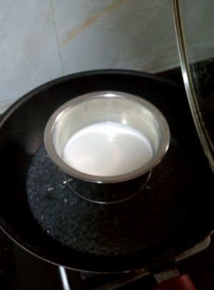 牛奶也倒入碗中,放进锅中隔水蒸,或者是直接倒入锅中加热,致沸腾,大约200ml火大的话也就一两分钟左右,不过这个容易溅奶,锅会很难刷,隔水蒸的话建议20分钟左右。