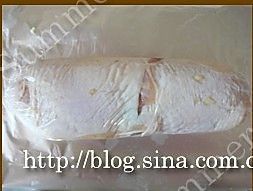 在外面包上一层锡纸定型,放入蒸锅中蒸二十分钟。放凉后放入冰箱中冷藏两个小时,拆开锡纸和保鲜膜,切薄片即可。