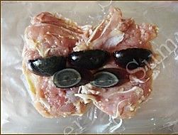 松花蛋去皮切两半或是四半,根据鸡腿大小而定,容易卷上就可以