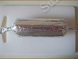 将锡纸卷起,手法和卷寿司差不多,两头拧紧防止松花蛋从两边挤出来