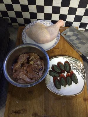 先准备好食材,鸡腿选用大一点的鸡全腿,鸡皮也要完整的