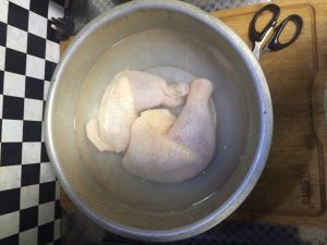 将鸡腿浸泡在冷水中2h 泡出血水。