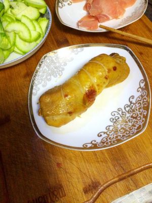 放入深盘,水开上锅蒸30-40分钟,鸡肉卷大就多蒸一会儿