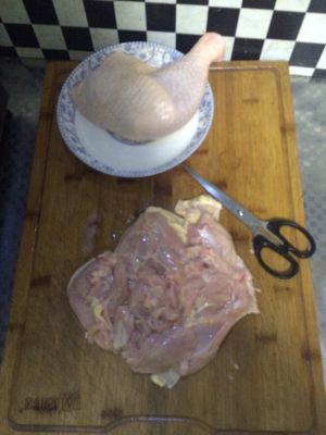 鸡腿处理干净 将鸡腿连皮带肉剃好。