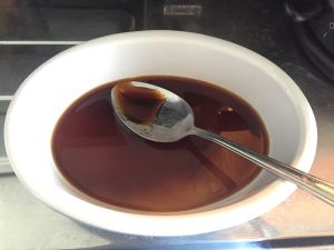 现在开始准备糖醋汁,这里的糖醋汁中只有糖和香醋,糖和醋的比例约为2:1,我用了4勺糖和2勺醋
