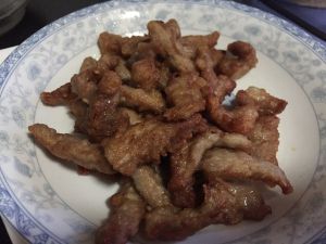 油锅烧热,把里脊肉一条一条放进去炸,不要一下倒进去哦会粘在一起。