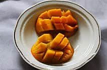 用的图上那种小台芒(这种芒果味道浓,又甜),给它去皮取肉(225克)。