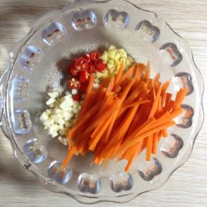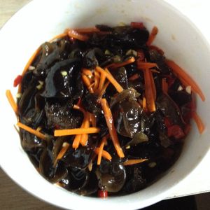 将木耳,胡萝卜,小米辣,蒜蓉,生姜,醋,生抽,白砂糖,蚝油,盐等准备的佐料都放到大碗里拌匀~就可以吃啦