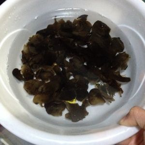 抓2把黑木耳用冷水泡发,大概一小时左右就可以了。