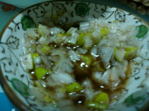 葱花加花生油,盐,五香粉,花椒粉调匀