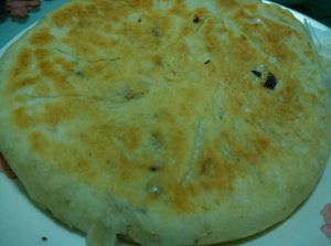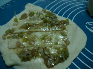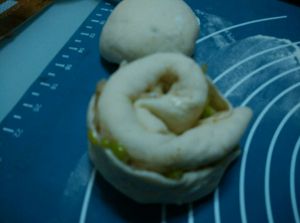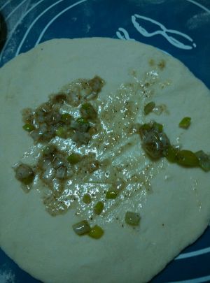 每一份擀成薄面片,涂抹一层薄薄的葱油