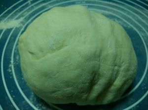 把牛奶酵母液倒入低粉中,揉成面团,面团揉的光滑、柔软,盖上温存醒十分钟。